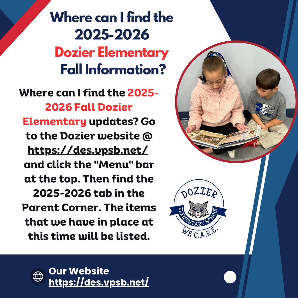Due to expected cold temperatures on Monday, November 10th, and Tuesday, November 11, 2025, Dozier Elementary students are allowed to dress warmly. Out of uniform dress must be wi...